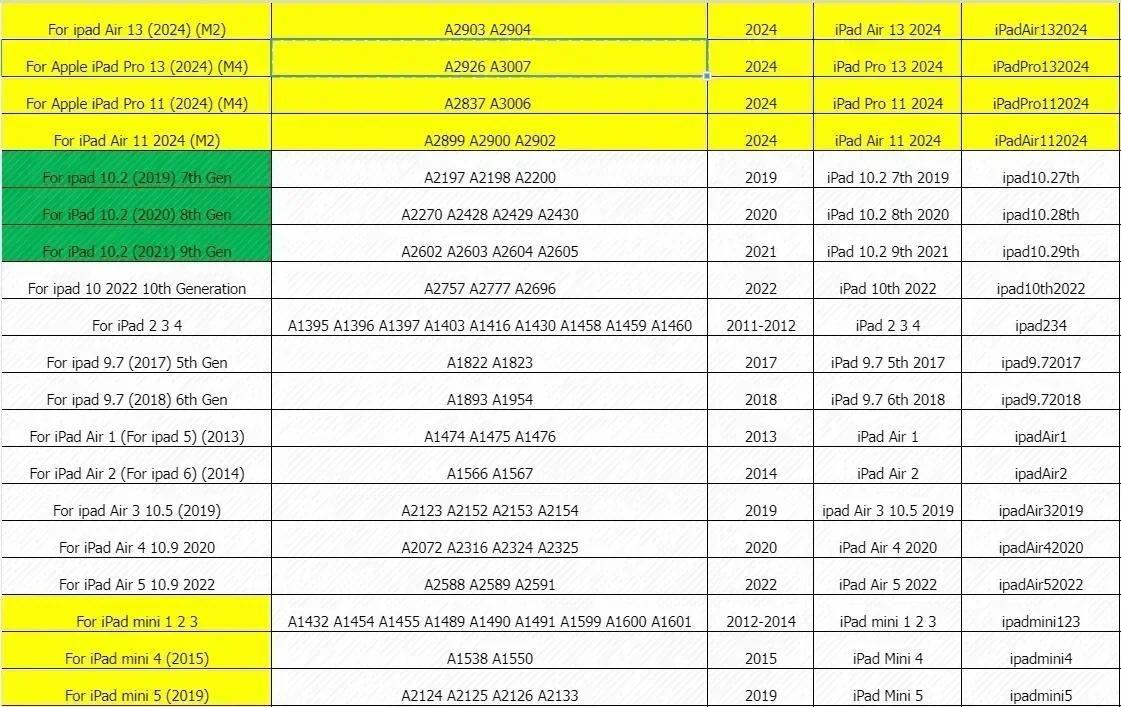 Apple Model Reference Table