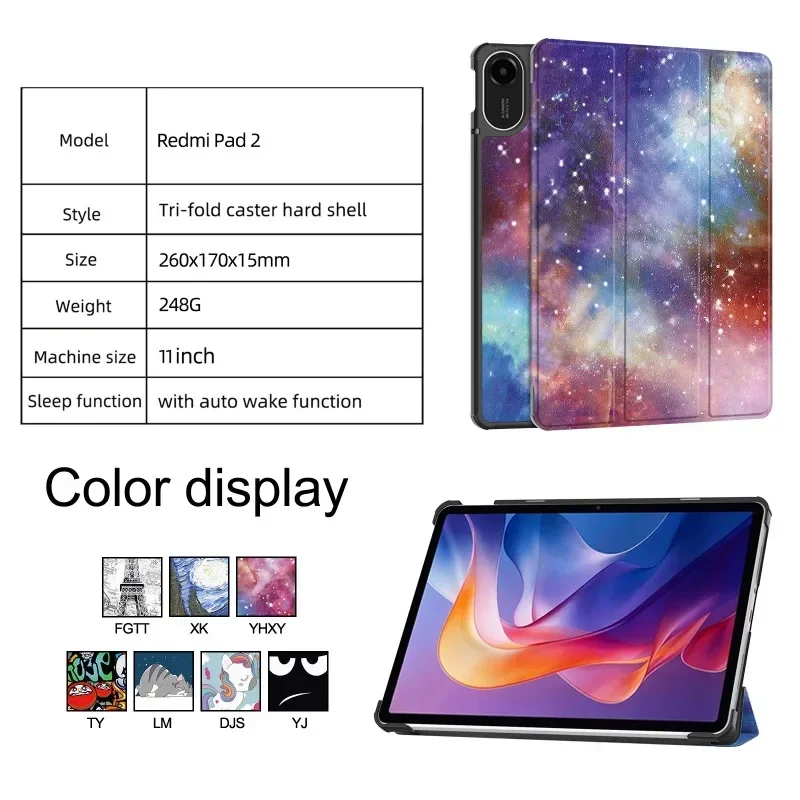 Case For Xiaomi Redmi Pad 2 2025 11 inch Tri-fold folding PU Leather Stand Cover For Redmi Pad2 11" with Auto Wake Function