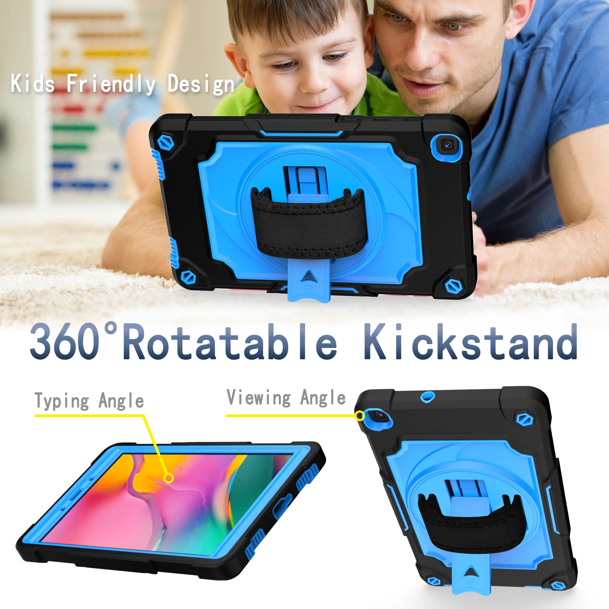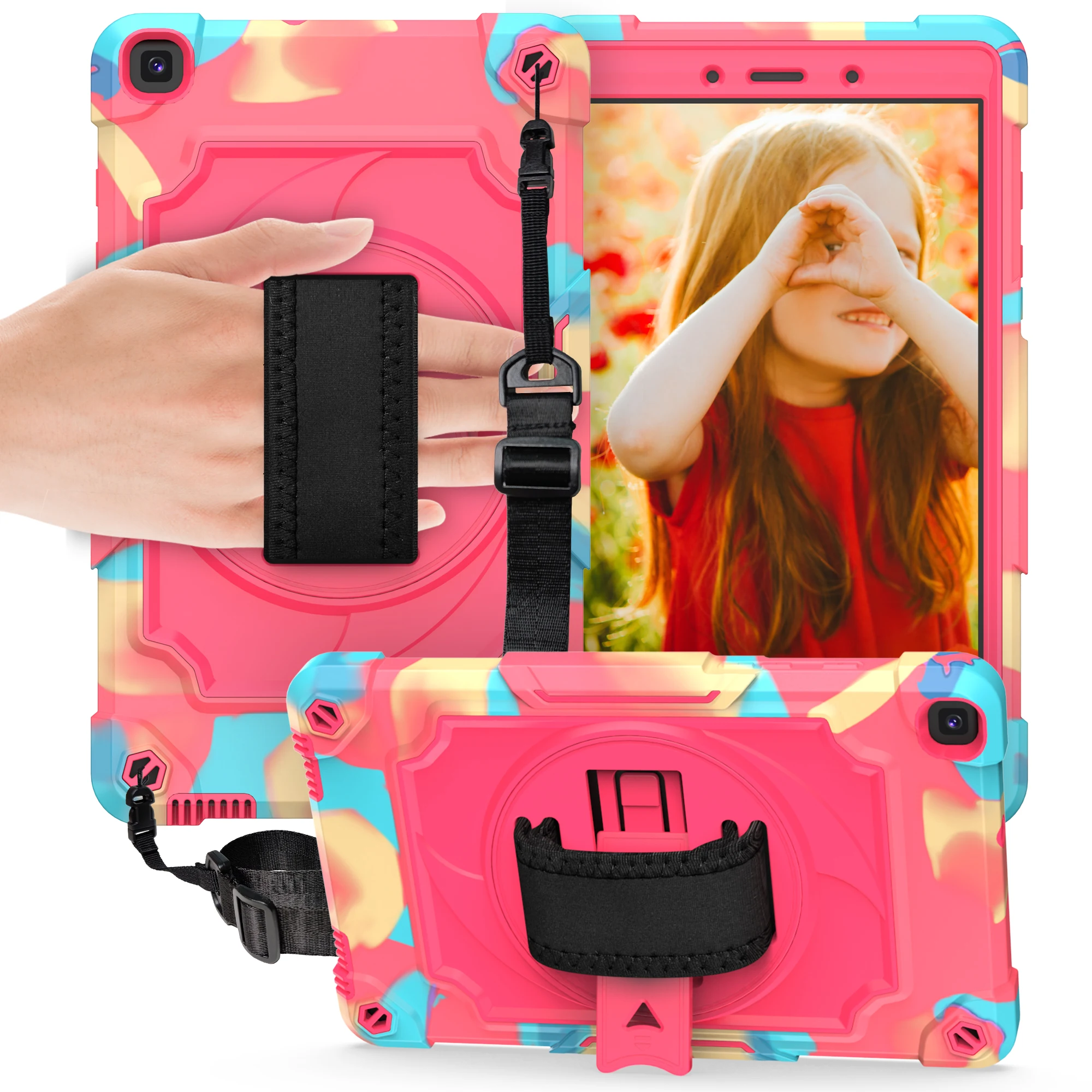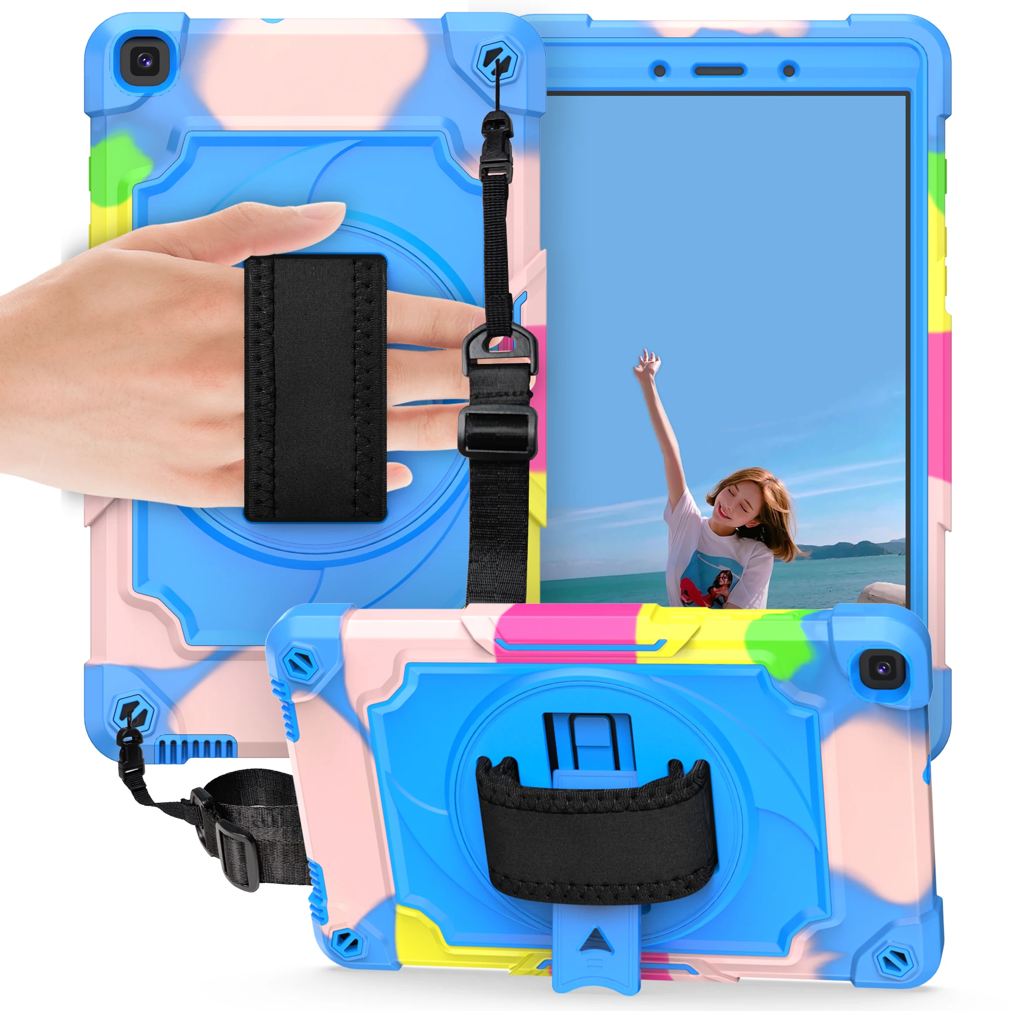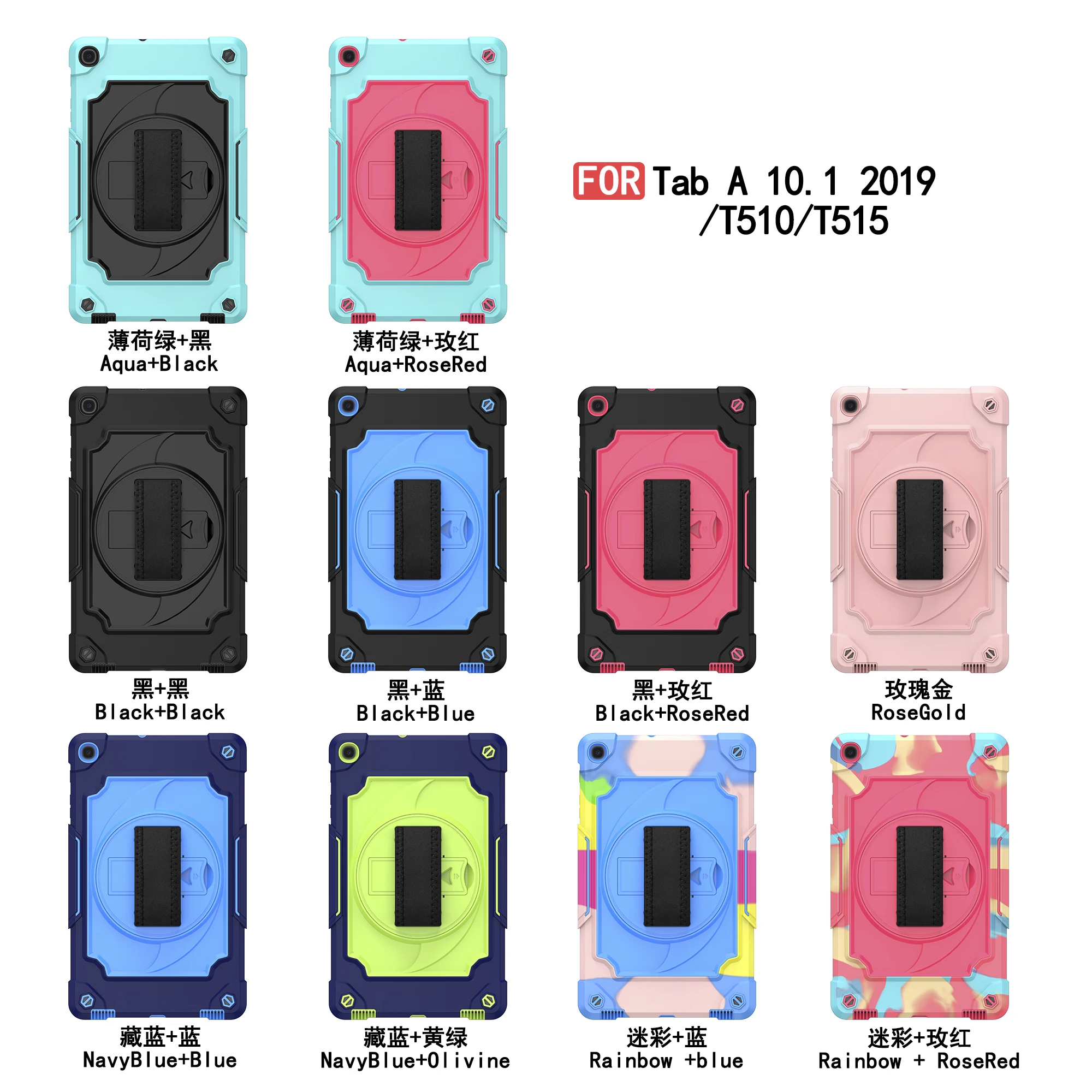Rotating Kickstand Case For Samsung Galaxy Tab A 10.1 2019 SM-T510 SM-T515 Hand Strap Shell Kid Tablet Cover For SM-T510 SM-T515